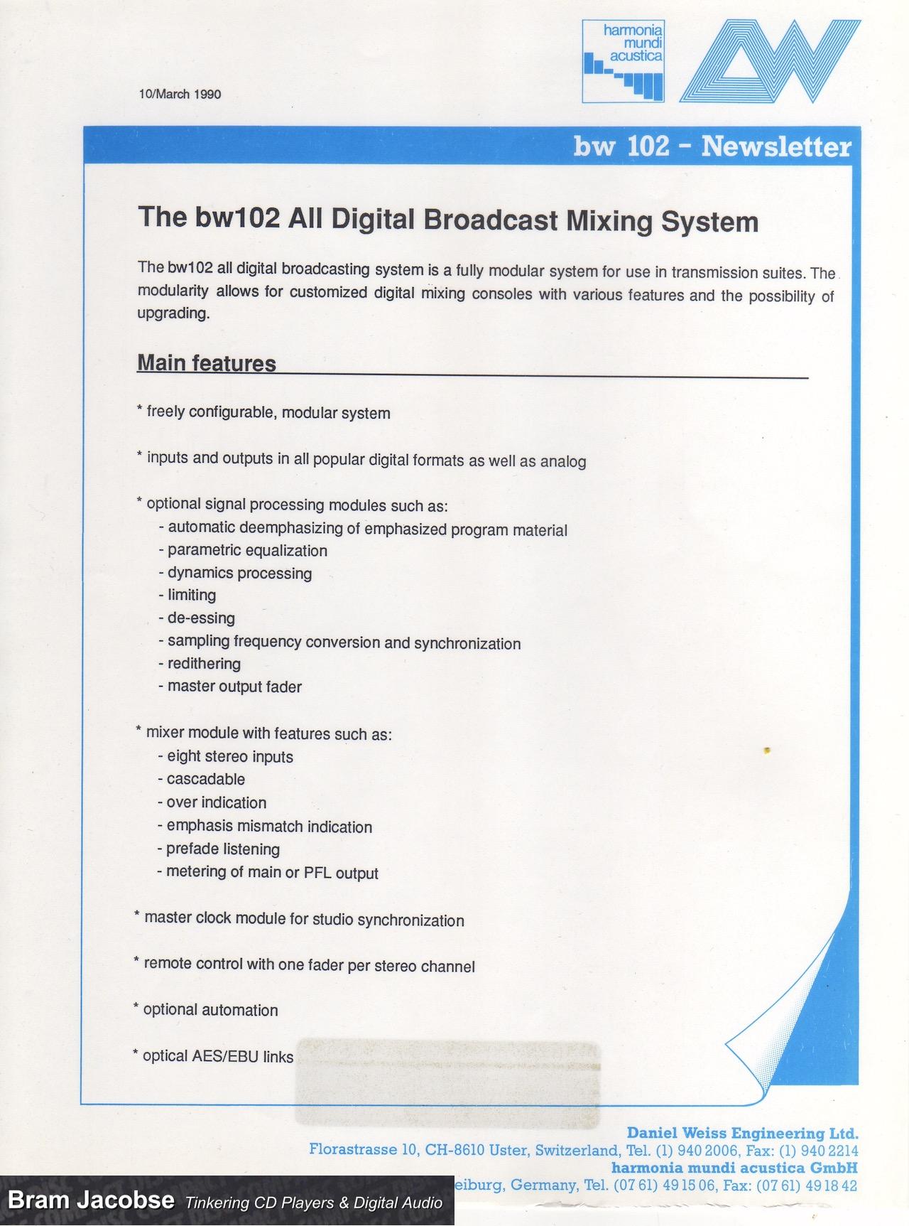 CD Mastering / Harmonia Mundi Acustica 2022-06-26 by Bram · Published 2022-06-26 Harmonia Mundi Acustica – BW 102 Harmonia Mundi Acustica – The Digital Tonmeister BW 102 : Digital-Audio-Processor