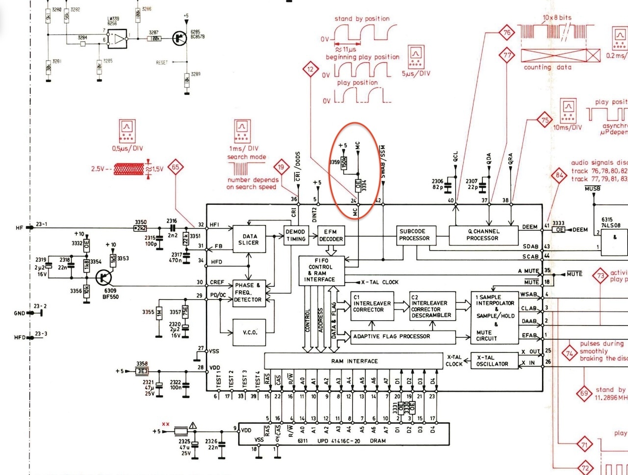 In service mode 3 the player is direct playing audio , thats strange, normaly you have to wait until lead-in is played . .Found something, The swing-arm can’t move completly to the inside of the CD