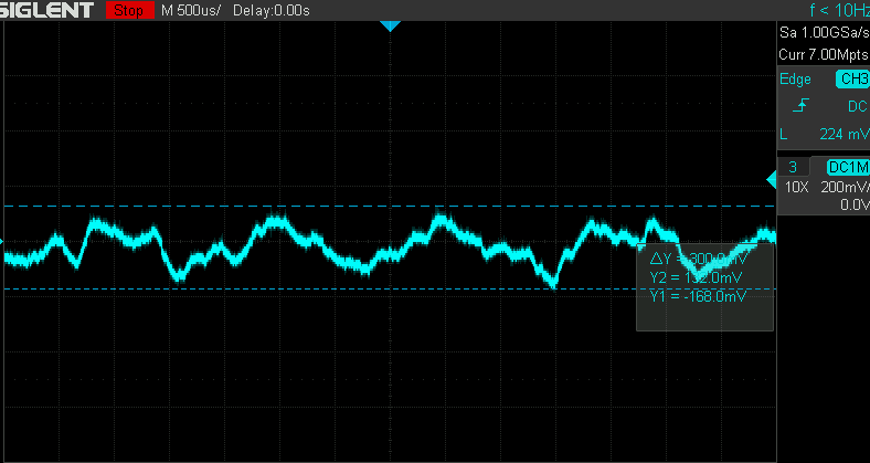 30 seconden iets meer dan 0,3 volt pp