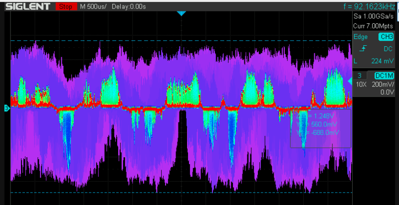 Even snel gemeten over de weerstand r3387 2,2Ohm. in de CD303 bijna 1 volt pp
