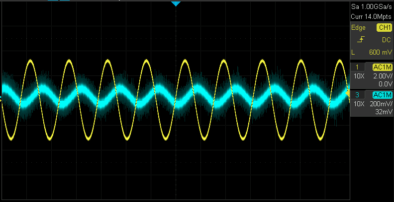 het zelfde signaal gemeten in CD303. met zelfde scope instellingen