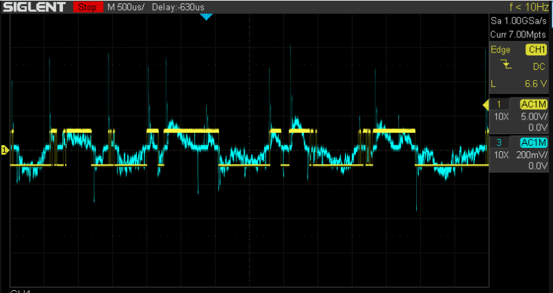 Klopt het dat de spikes die ik nu zie de oscillatie veroorzaken.?