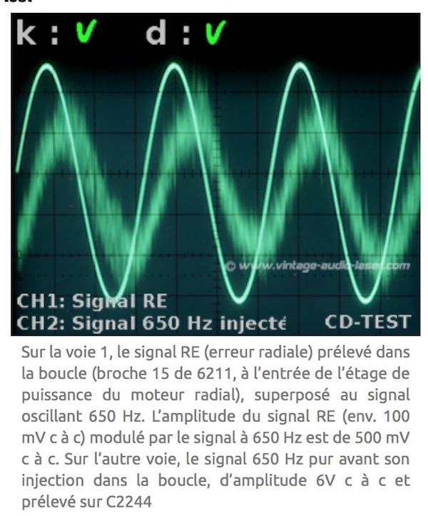 Ik heb een speler met oscillatie op het 650Hz wobble circuit dat de radial servo in gaat.