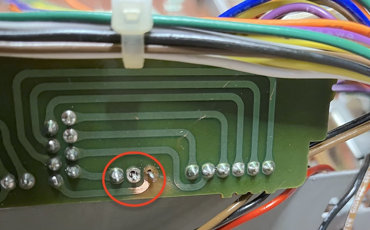 On interconnect board there is a broken solderpoint ,