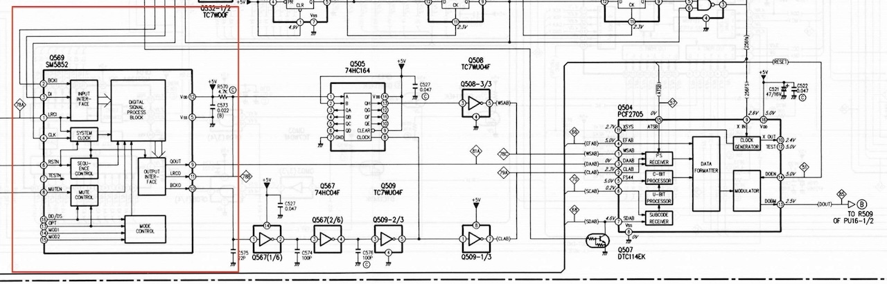 Replaced the resisitos and now we have a working right Channel.., left is still dead…;-( , aha Left channel TDA1547 has vREF of -0.5 instead of 4.7volt…the 560 ohm ressitor is fine ..
