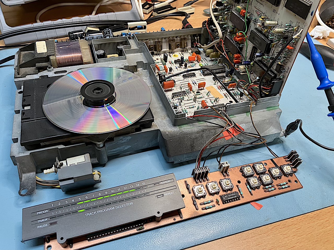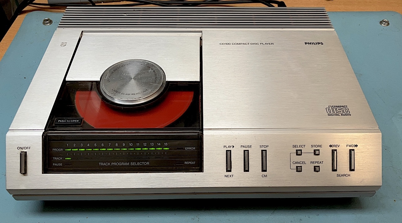 CD 100 from 1984 week 20 misses 1 audio Channel , Distortion, When the player is turned on the leds are dimmed for a few seconds