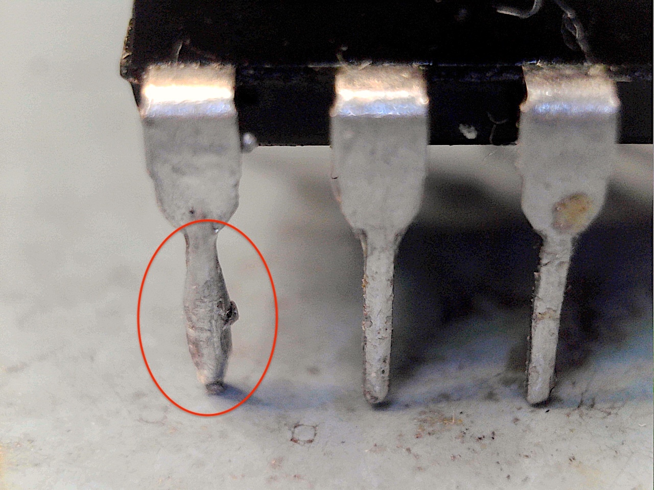 The Root cause , Pin 1 , of the IC pins has to much Solder left on