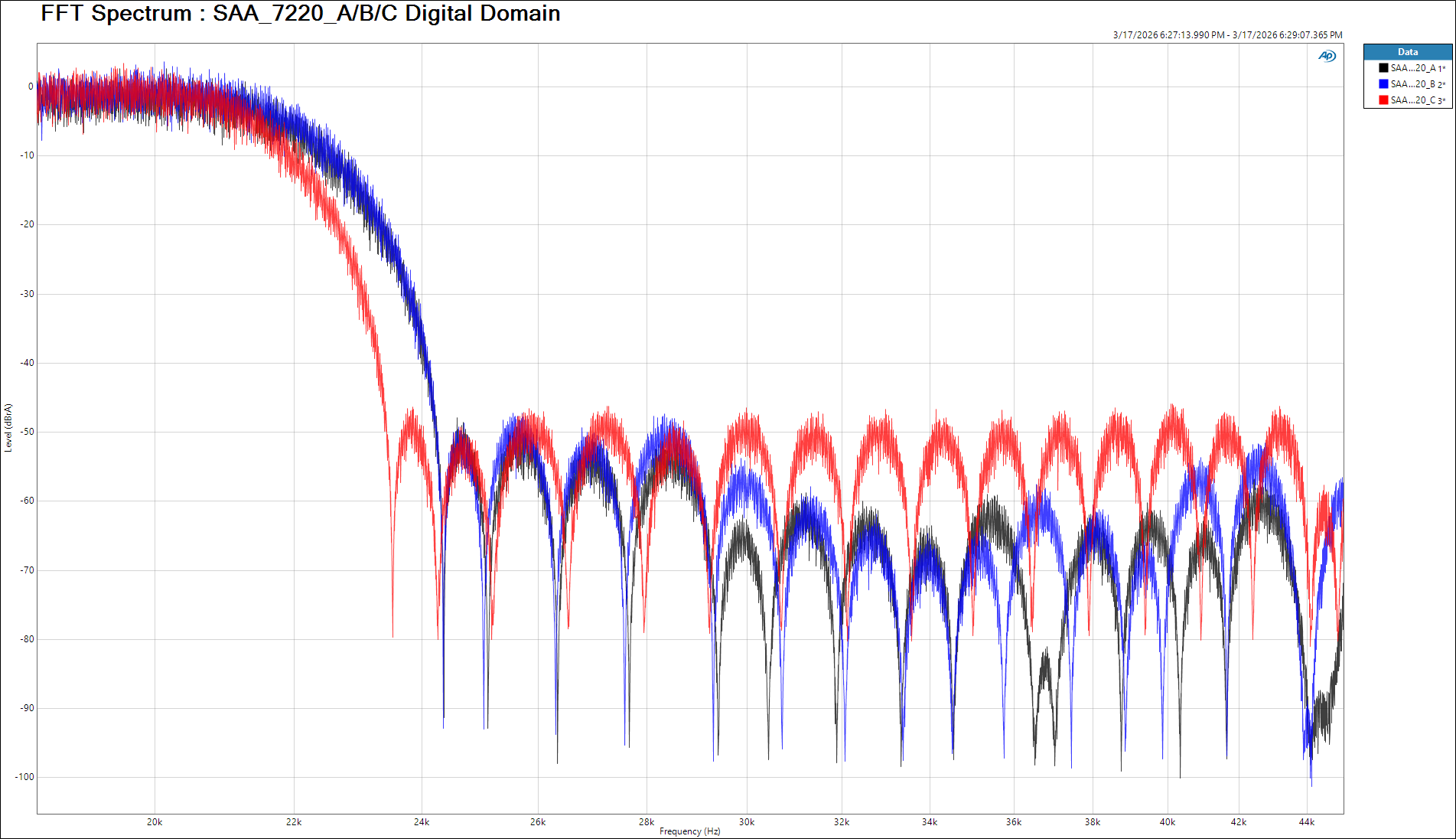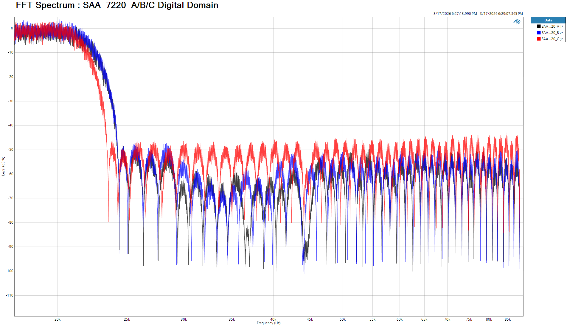 Measured in analog domain : CD 160 with CD player as a DAC 2025 SPDIF Input with SAA7220P/A,B,C via TDA1541A