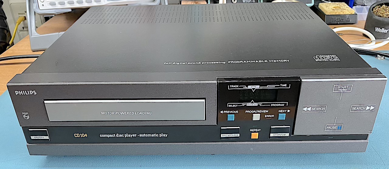 This CD 104, which I refurbished long time ago 2016/17 , had a bit of an accident. Its owner placed it on a pellet stove during a job and forgot about it, and it got hot. After cooling down, it plays fine, but one channel sounds strange now. Could I take a look?
