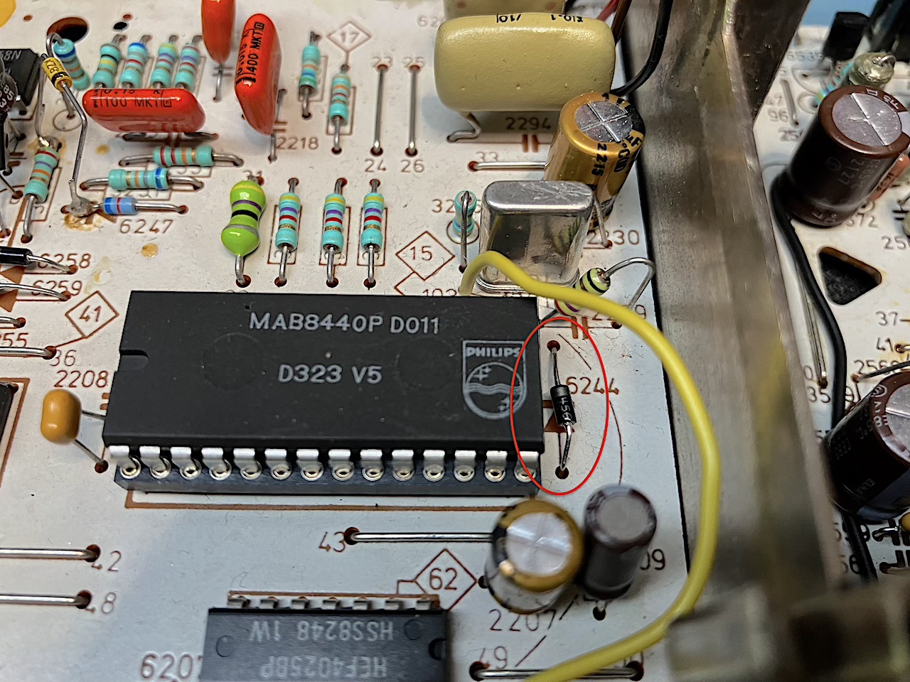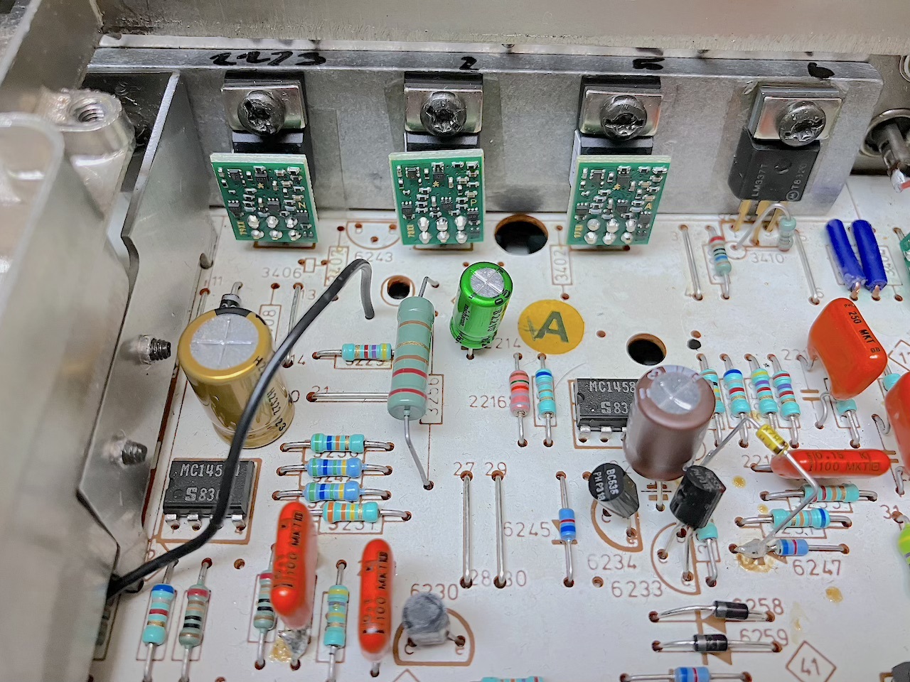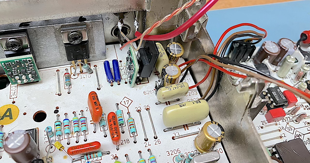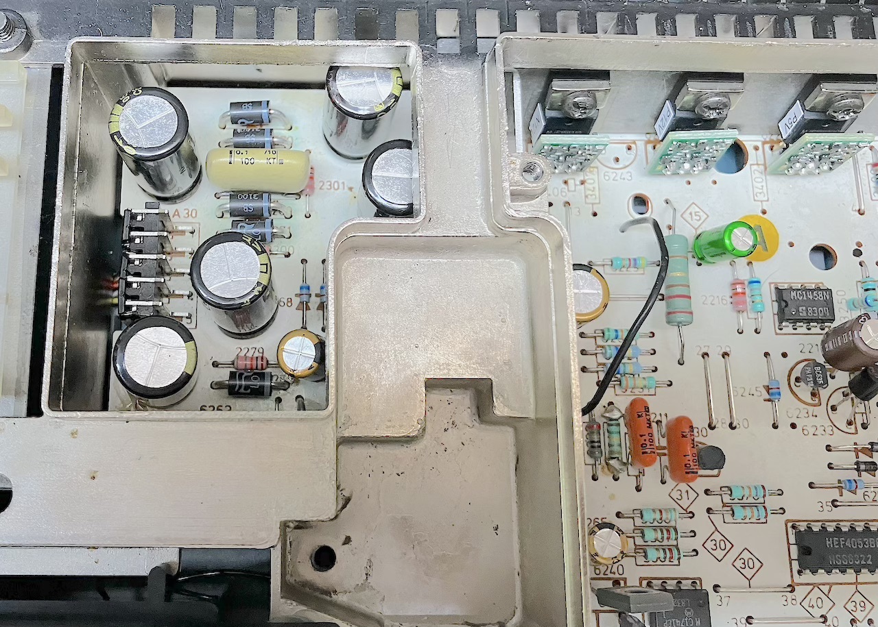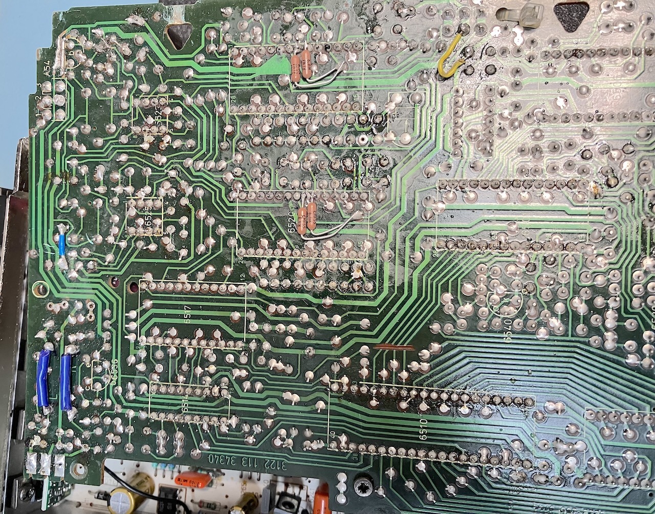 First lets have a look around in this CD 100 , Here some modification , extra Resitors , Bypasses on Kill-relay , repaired traces