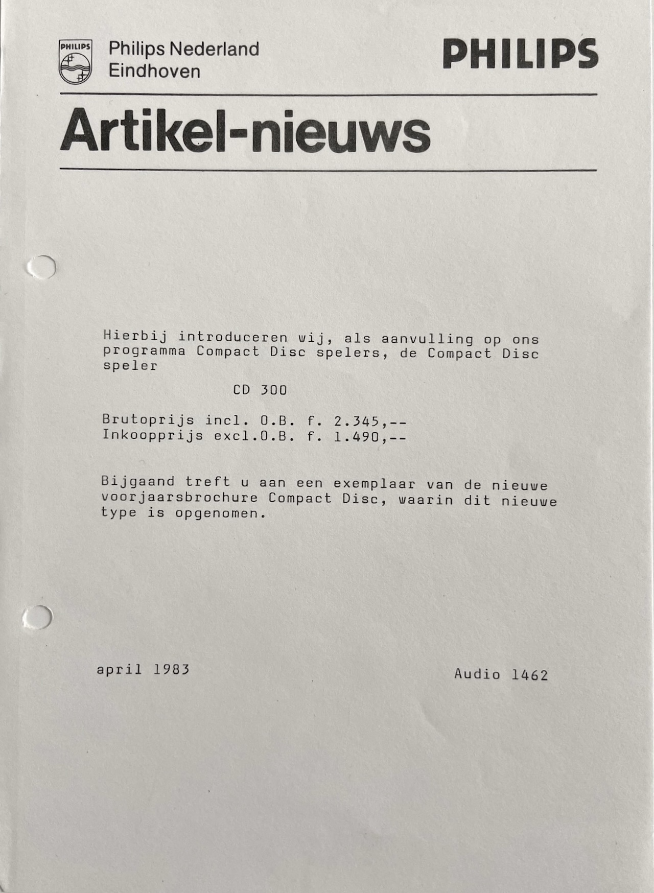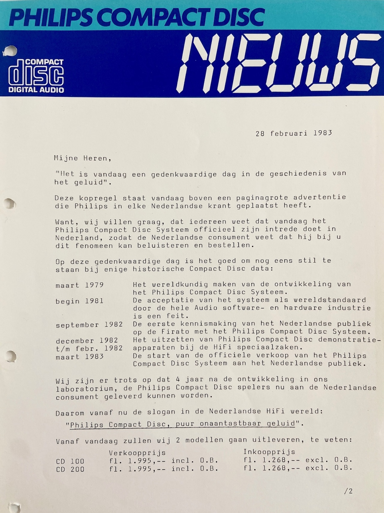 - March 1983 : The start of the official sale of the Philips Compact Disc System to the Dutch public.