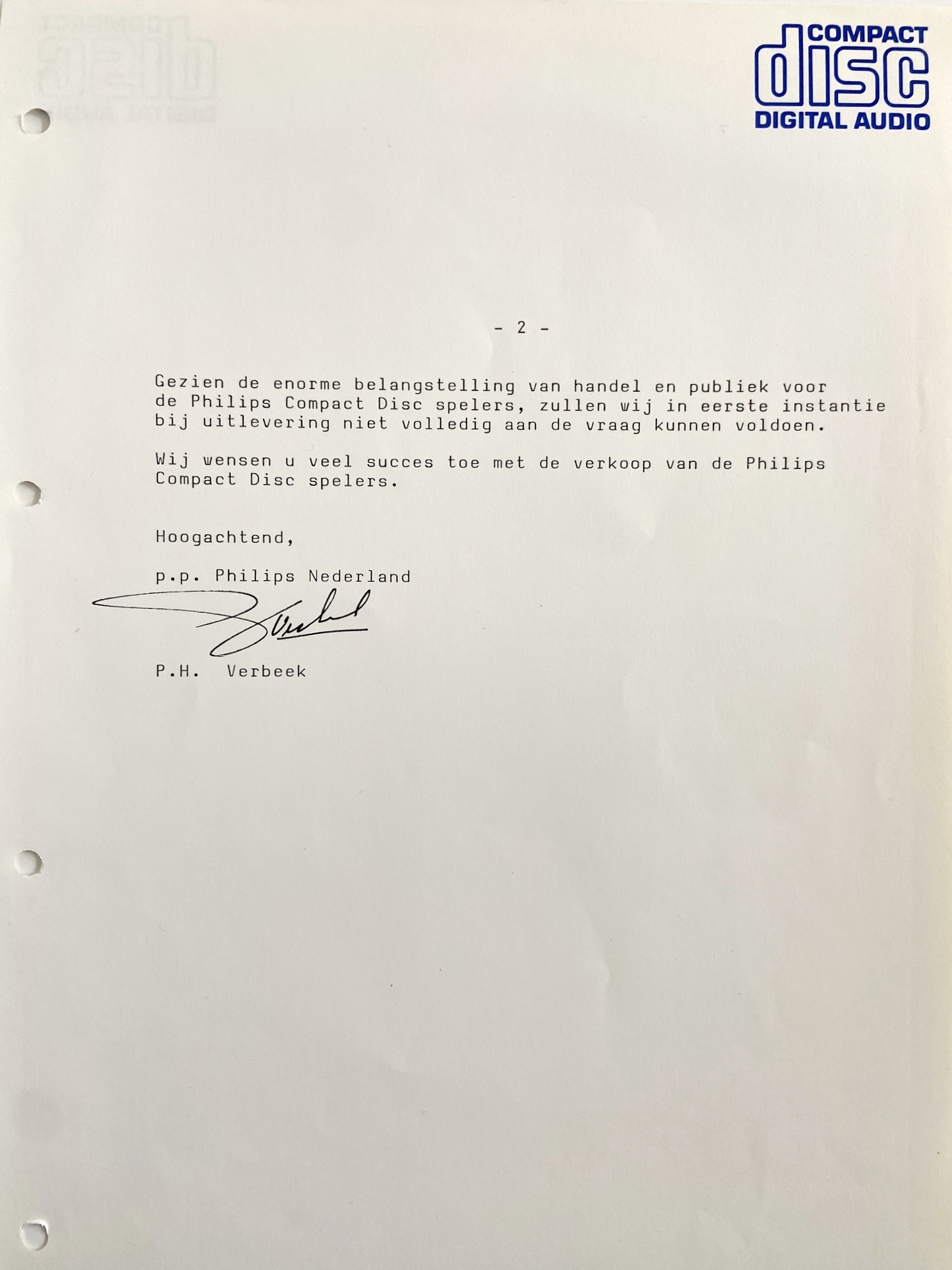 Given the enormous interest from the trade and the public in the Philips Compact Disc players, we will initially not be able to fully meet the demand upon delivery.