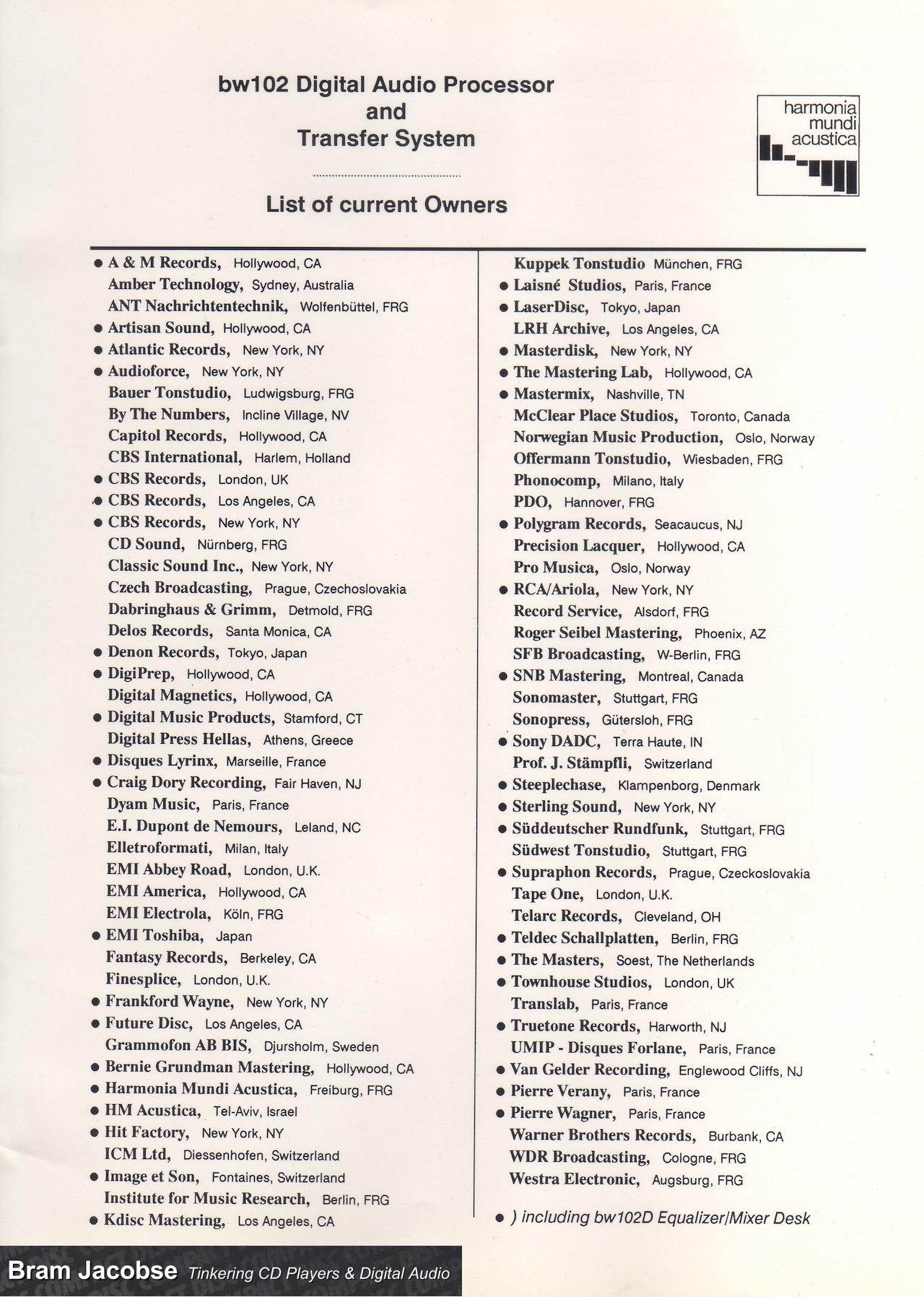 Harmonia Mundi Acustica – BW 102 Planning information by Bram · Published 2022-06-28 · Updated 2022-06-28 HARMONIA MUNDI ACUSTICA – BW 102 Planning information